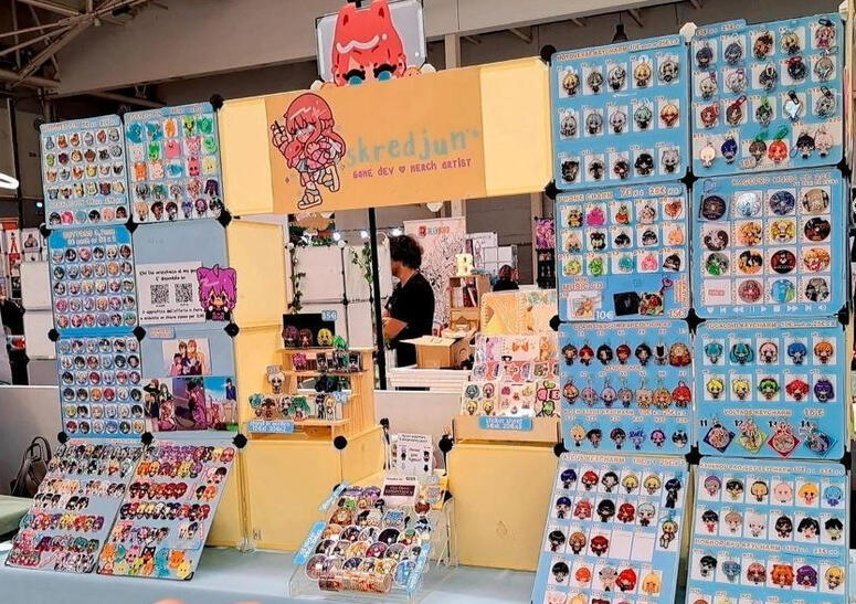 Hi! I'm Alex, a traditional and digital full-time artist from Italy. I studied at the Academy of Fine Arts in my region and graduated with a degree in Graphic Art.During my time at university, I began my career as a merchandise artist, selling only online and in small quantities.In 2020, I started my career as a game developer and, in April 2025, I finally published my first visual novel, entitled Neko No Sentouki. I am currently working on releasing the demo for my second game, a pixel RPG.In 2023, I began exhibiting my work at fairs.Over the years, I have also participated in several zines, some Italian but mostly international.I love to design merch of everything that I am passionate about, especially video games.My style is characterised by softness and saturated colours, which is why I really enjoy drawing chibi characters. Not being constrained by human anatomy enables me to express myself more freely through my art.Below, you will find some examples of my work as a merch artist, as well as details of my setup at fairs!
